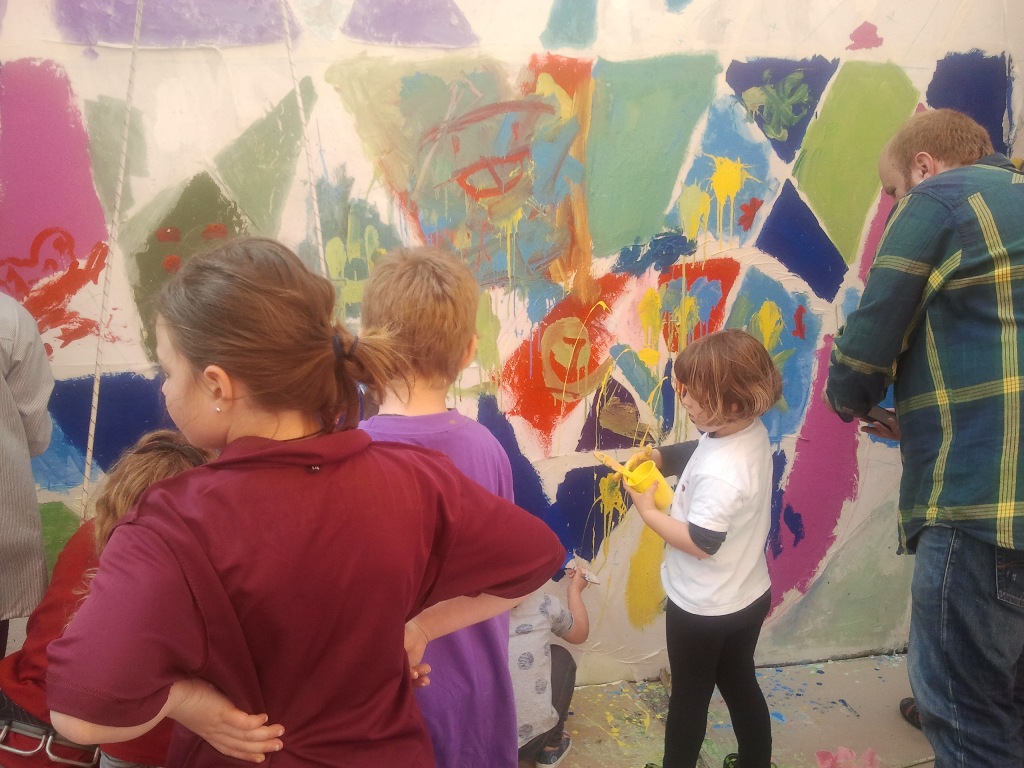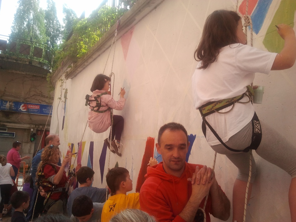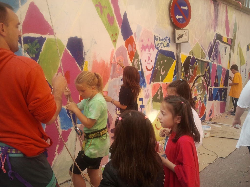 Halaxe gertatu da, gure herriko haurrei galdegin genien zer egin nahiko luketen zein amets zuten, eta horietako bat hori zen hormak koloreztatzea, eta halaxe egin genuen elkarrekin, bai elkarrekin, auzolanean eta familian ondo pasa nahi dugulako.