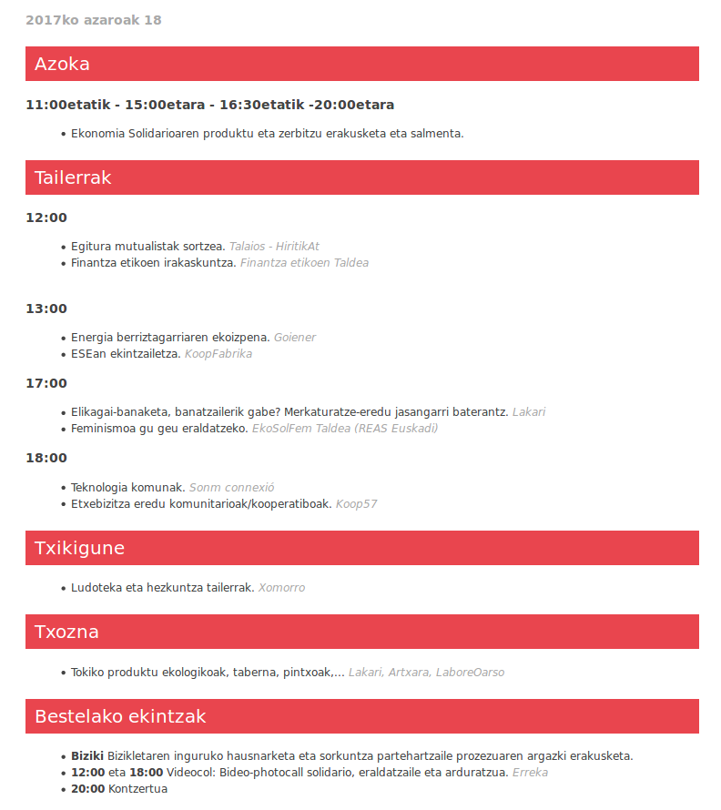 Antolatzaileen arabera ekonomia bizitzaren zerbitzura jarriko da, kooperatuz, aktibitate sektore ezberdinetatik: elikadura, aisialdia, komunikazioa, hezkuntza, teknologia, baliabideen ekoizpena, aholkularitza, pertsonentzako zerbitzuak, zaintza eta beste asko.