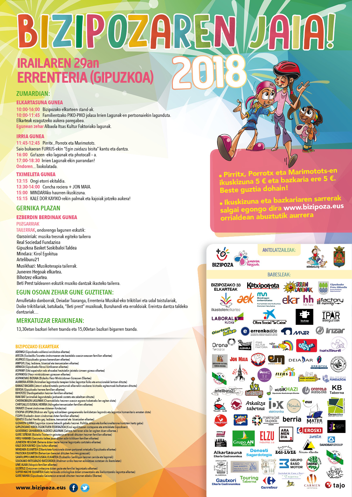BIZIPOZA elkarteak antolatuta irailaren 29an Errenteria/Oreretan Bizipozaren Jaia ospatuko da. Aurten Juneren hegoak eta Mindara elkarteen lana izango da protagonista nagusia. Jaiak helburu desberdinak ditu, besteak beste, laguntza afektiboa eta materiala eskaintzea izaera bereziko haurren babes eta arretarako elkarteei.