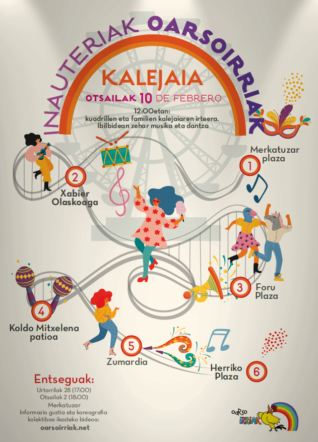 Zuen kuadrillak edo familiak berezko dantza, magia, truku edo antzezpenen bat sortu nahiko balu, idatziguzue oarsoirriak@gmail.com helbidera, eta azalpen guztiak emango dizkizuegu. Ahal bada, mezua urtarrilaren 24a baino lehen bidali, baina lasai, otsailaren 8ra arte ere izena emateko aukera daukazue eta!